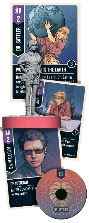 На помощь коллеге спешит и другой консультант Парка Юрского периода — доктор Ян Малкольм. Так же, как и Сэттлер, он сражается только в ближнем бою и может оставлять на поле жетоны наблюдения. В тандеме учёные изучают Парк особенно эффективно.