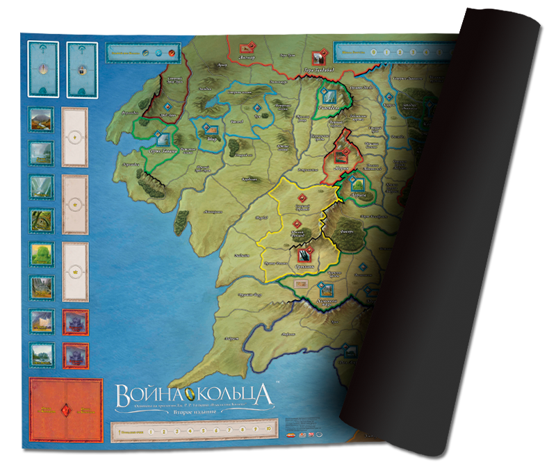 На этом предзаказе доступно ограниченное количество неопреновых плейматов для «Войны Кольца». Размер плеймата — 128 x 88 см, так что тщательно рассчитывайте размер вашей игровой поверхности перед покупкой. Плеймат легко скручивается и поставляется в специальном тубусе.