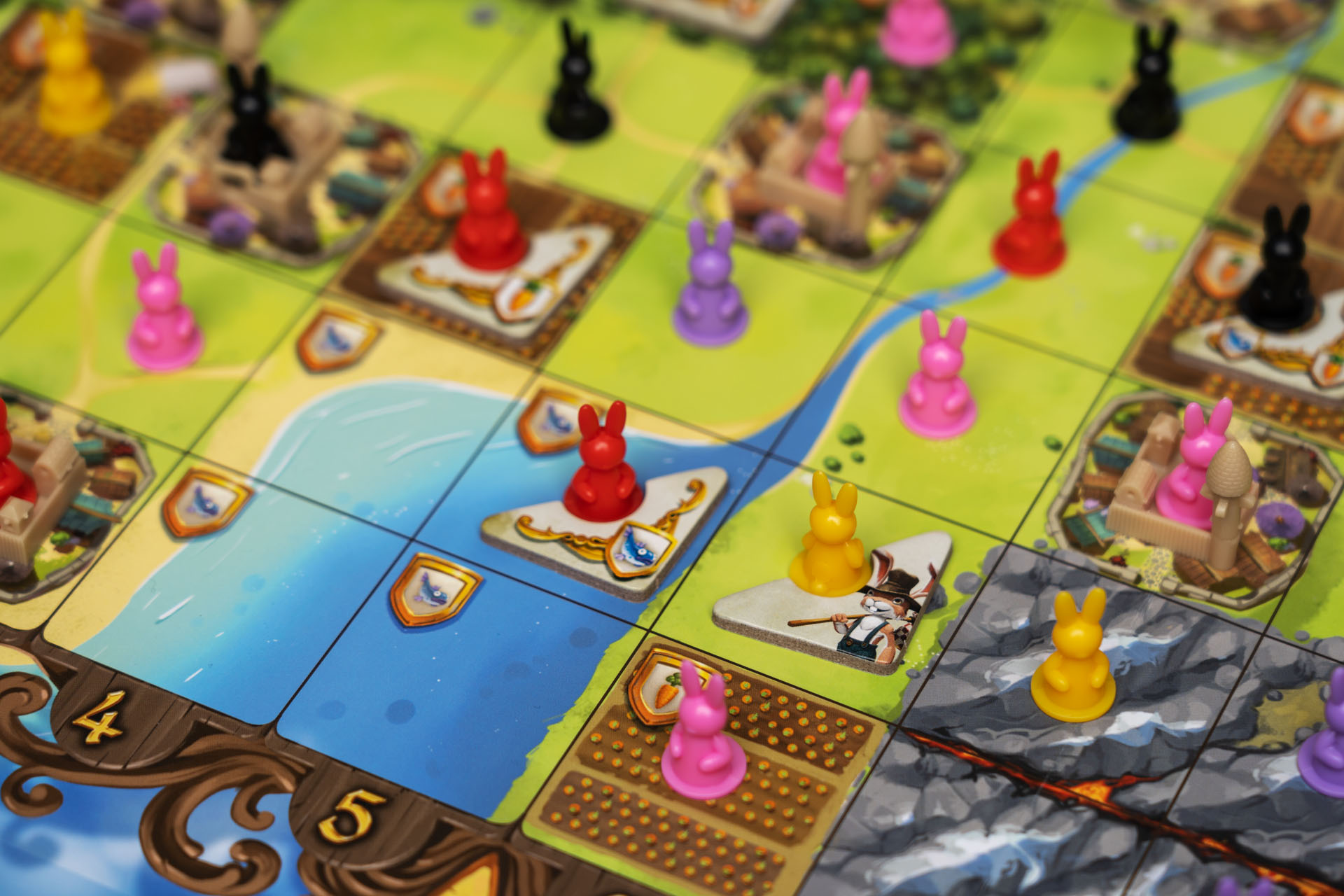 Теперь кролики не только захватывают земли, но и торгуют ресурсами! Правда, не совсем друг с другом. Новая механика позволяет получать монеты всякий раз, когда вы выставляете второго кролика в феоде. А в конце игры вы получите за них победные очки — причём количество монет будет умножено на количество ваших уникальных ресурсов.