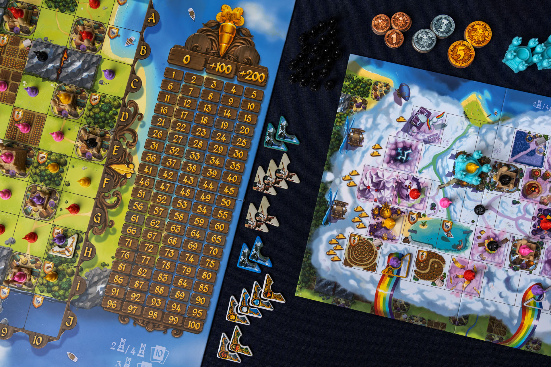 Второе поле. И нет, не на замену старому. В составе дополнения вы найдёте поле Большого Облака, которое участвует в игре наравне с базовым и даёт ещё больше возможностей. Для его захвата нужны новые карты, а на территориях Облака вы найдёте новые редкие (чудесные) ресурсы и города, а также несколько новых механик, позволяющих соединить ваши небесные владения с земными, спустить с облаков дополнительную морковку — да и много чего ещё!