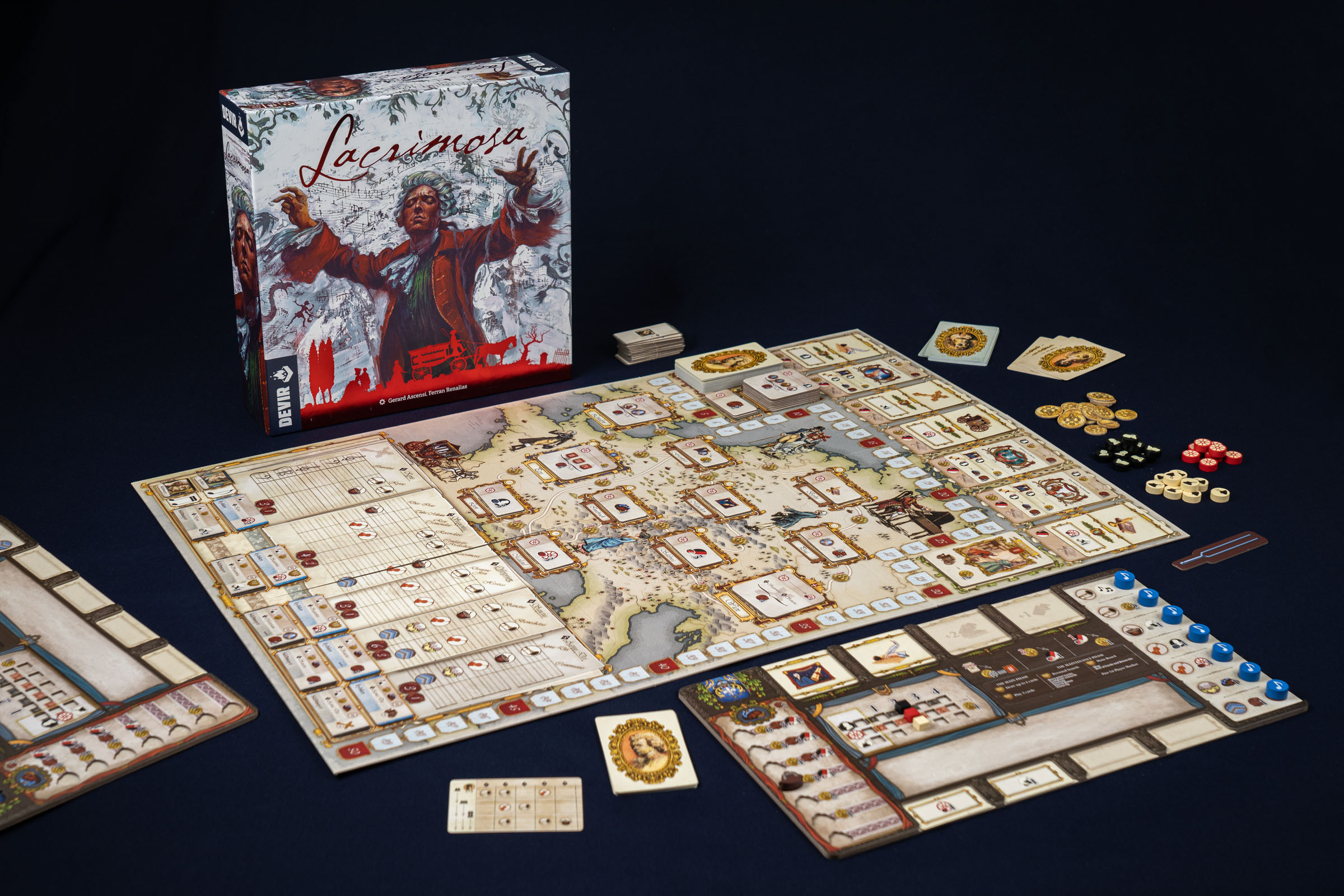 «Лакримоза» — это комплексная евро-стратегия, основанная на необычной механике розыгрыша карт и неожиданной тематике. Перед вами настольная фантазия на тему исторических событий, которые могли бы произойти после смерти гениального композитора. Кто из вас докажет, что лучше всех знал Моцарта при жизни, и поможет дописать легендарный «Реквием»?