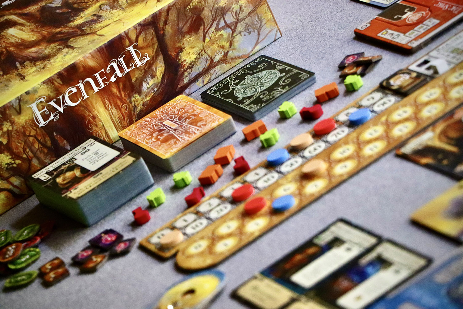 «Лихолетье», известное за рубежом как Evenfall, — дебютное творение Стефано ди Сильвио и вторая игра молодого издательства Nanox Games. На прошедшей осенью 2023 года выставке в Эссене она стала одной из самых горячих и обсуждаемых новинок. Ещё бы, её необычная тема и мистическое оформление так и притягивают взгляды!
