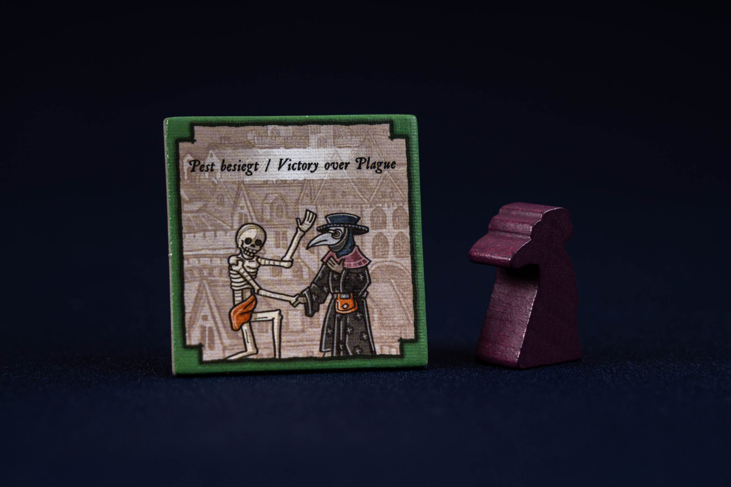 С самого начала партии вы ощутите, насколько игра стала сложнее. Жители гибнут, а ресурсы истощаются. Карты чумы накладывают непредсказуемые отрицательные эффекты, а новые события добавляют жетоны мертвецов в ваши мешки с подданными. Жуть какая! Адаптируйтесь к непростым условиям и защитите горожан от Чёрной смерти.