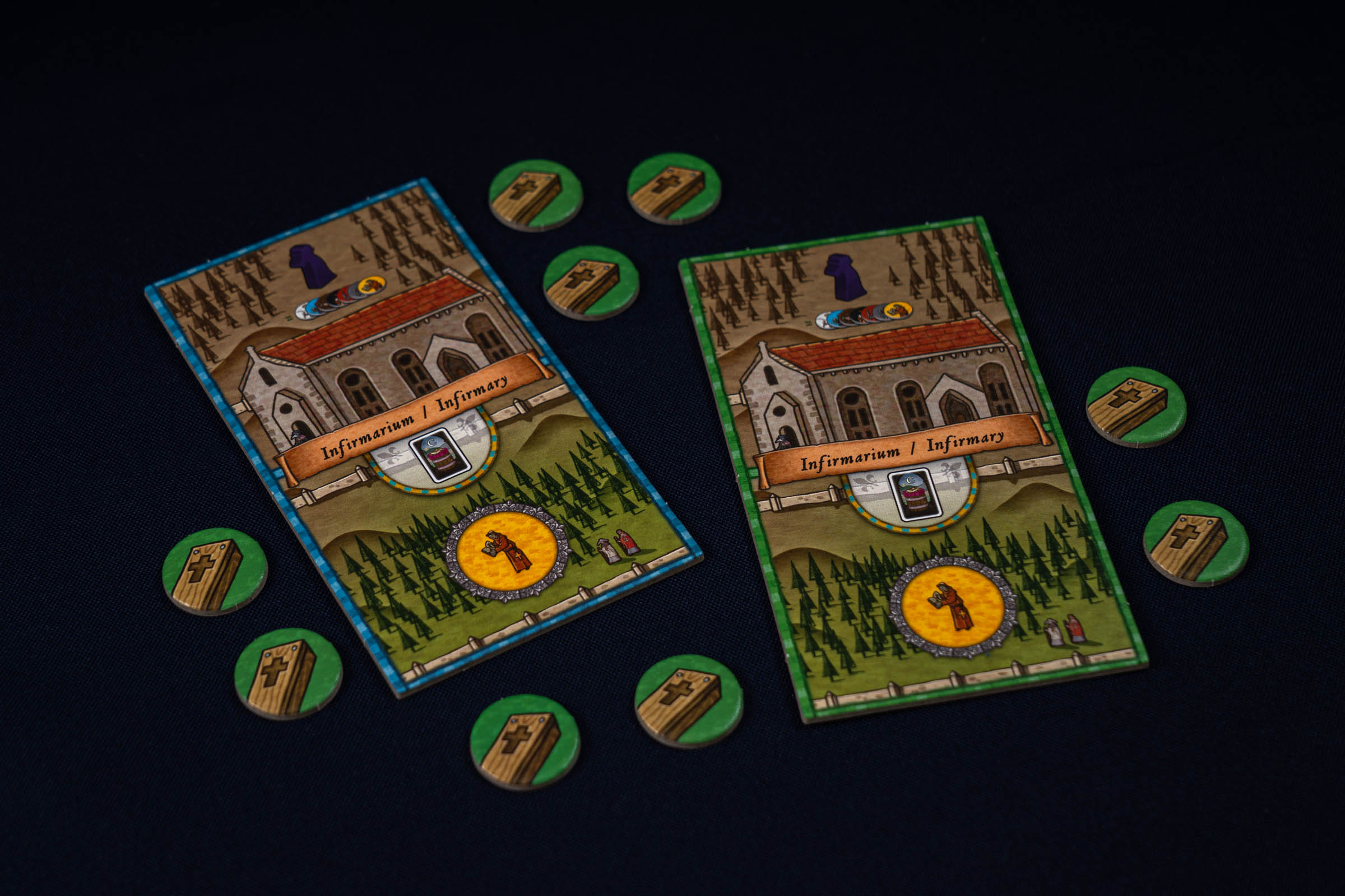 Рыцари помогут безопасно передвигаться по дорогам, моряки — по рекам, а монахи покажут, что они мастера на все руки. Используйте их навыки мудро: запоминайте, какие жетоны лежат в каждом мешочке, и вместе решайте, когда лучше выполнить то или иное действие. Главное — успейте закончить строительство до приезда епископа.