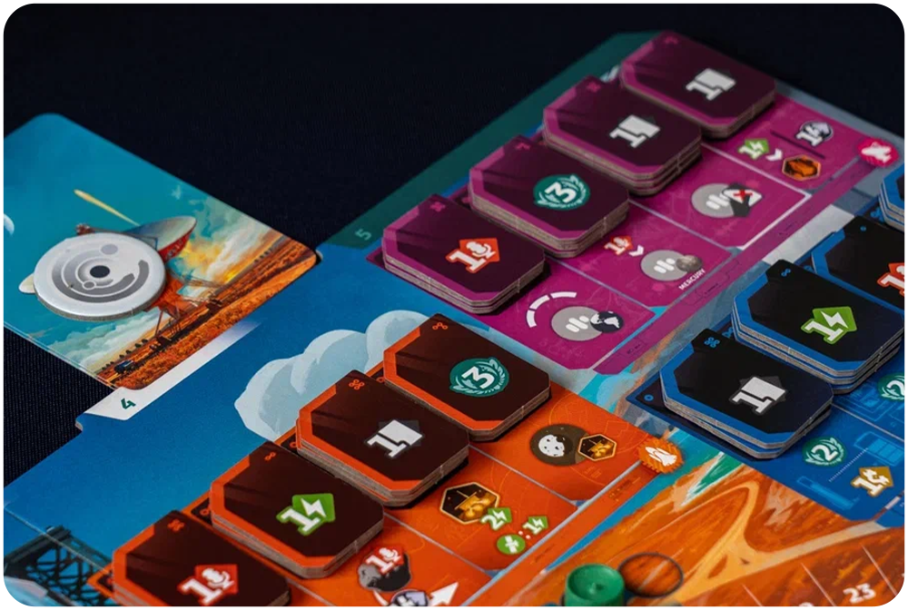 Каждую карту можно сыграть четырьмя способами. Во-первых, заплатить стоимость проекта и применить его эффект. Во-вторых, сбросить карту и получить моментальный бонус: известность, данные или движение зонда. В-третьих, карты можно использовать, чтобы увеличить доход вашей корпорации. И в-четвёртых, чтобы сканировать