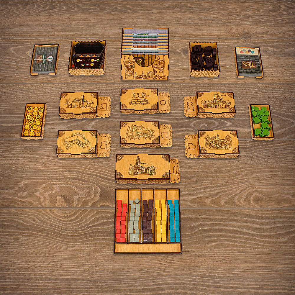 В начале игры ваш город — всего лишь пустой планшет, разделённый на 16 клеток. Вам предстоит заполнять его ресурсами, а уже из них согласно схемам строить различные здания. Причём от партии к партии они будут меняться. Сегодня вы можете построить театр и аббатство, а завтра вместо них вас ждут пекарня и храм — и каждая постройка приносит победные очки абсолютно по-разному.