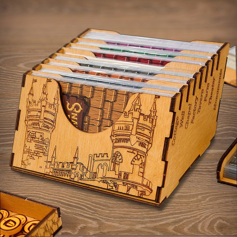 Также каждый игрок выбирает себе одну карту монумента — это уникальное здание, доступное только владельцу его карты. Они держатся в секрете до момента их строительства и открывают новый источник победных очков или дают полезные эффекты.