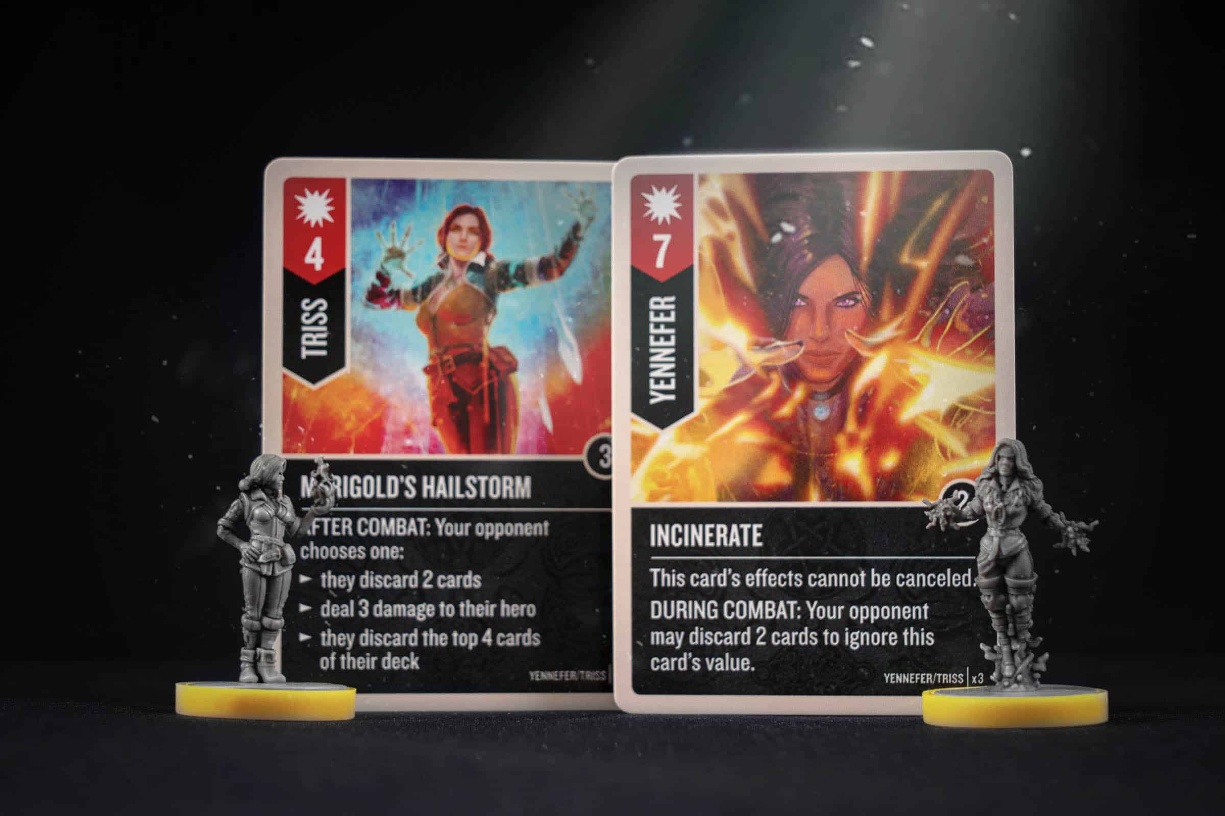 Бесстрашная Трисс Меригольд действует более размеренно и осторожно, но не менее смертоносно. После розыгрыша приёма вы наносите 2 единицы урона бойцу на соседней ячейке. Это обязательный эффект, а значит, под чары Четырнадцатой с холма могут попасть не только противники. Уникальные карты Трисс поражают своей силой и заставляют врагов принимать страшные решения: